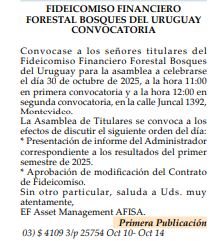 Fid. Fin. Forestal Bosques del Uruguay - Convocatoria a Asamblea de Titulares.